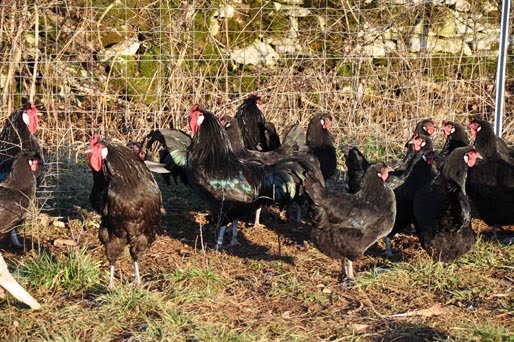 Coloris noirvolaille de grande taille, de chair exceptionnelle, qui peut être chaponnée pour en faire une remarquable volaille à rôtir. La plus belle avec la Barbezieux.